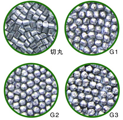 強(qiáng)化鋼丸采用拉絲、裁切、強(qiáng)化等工藝精制而成,嚴(yán)格按照德國(guó)VDFI8001/1994和美國(guó)SAE J441,AMS2431標(biāo)準(zhǔn)生產(chǎn)。本產(chǎn)品顆粒大小均勻,產(chǎn)品硬度分別為HV400-500、HV500-555、HV555-605、 HV610-670及HV670-740;產(chǎn)品粒度大小從0.2mm-2.0mm;形狀分別為圓形切丸、拋圓度G1、G2、G3;使用壽命從3500次至 9600次循環(huán)。